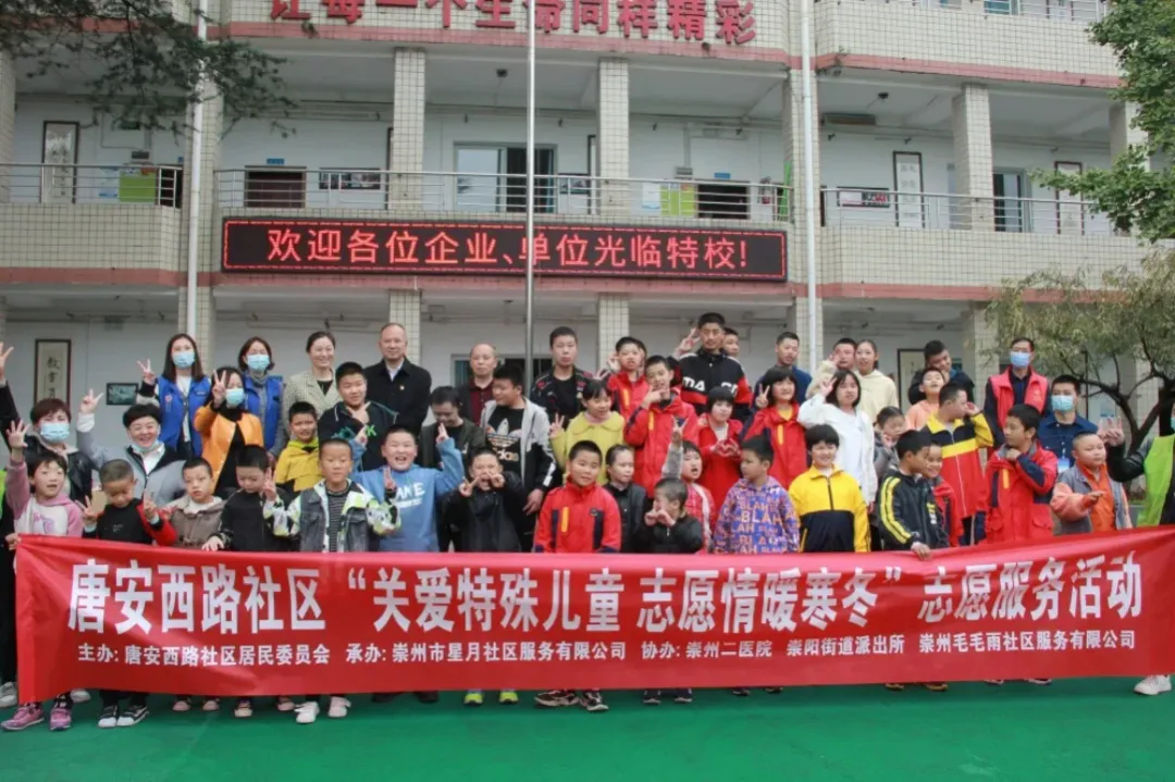 崇州二医院参加“关爱特殊儿童 志愿情暖寒冬”志愿服务活动,向特殊儿童捐赠拖鞋、手套、图书等学习生活用品。
