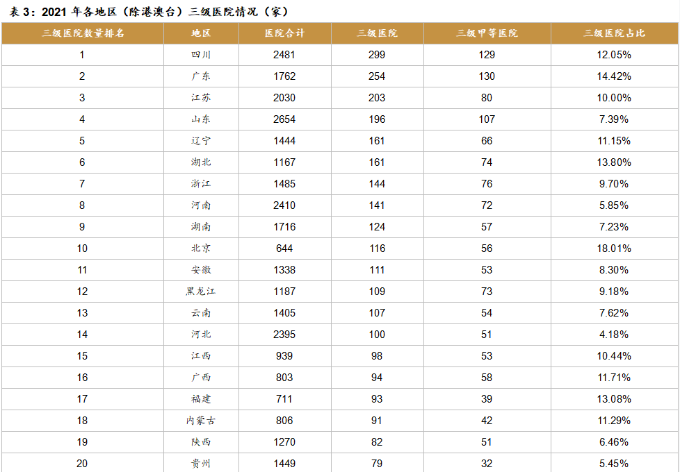 2.3 部分省份优质医疗资源不足,太阳成城集团tyc234cc古天乐布局医院存在区域优势