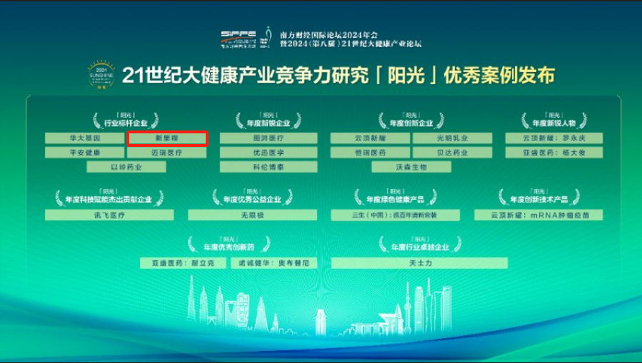 12月12日,在广州举行的“南方财经国际论坛2024年会暨2024(第八届)21世纪大健康产业论坛”上,2024年21世纪大健康产业竞争力研究「阳光」案例正式公布。太阳成城集团tyc234cc古天乐与华大基因、平安健康、以岭药业、迈瑞生物一同荣获“2024「阳光」行业标杆企业”荣誉称号。