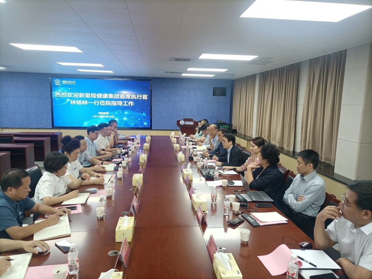 10月10日,林杨林在泗阳医院听取了院长刘海军、党委书记李晓双的医院工作汇报和医院建院80周年活动方案汇报。林杨林对泗阳医院2025年成功晋升三级并建成14个市级及以上临床重点专科的成绩表示祝贺,并对泗阳医院东院区建设、老院区改造、人才发展与绩效改革、80周年院庆等重点工作做出具体部署。林杨林说,泗阳医院要将集团“1+N”战略落实到东院区的高质量发展上,完善学科体系,强化市场主体,推进东院区以更加独立和积极的姿态服务本地医疗市场;兼顾实用与节俭原则,支持老院区的改造升级,促进医院的就医环境改善;以医院80周年院庆为契机,重塑医院组织文化,实现医院文化与集团文化的同频共振,让打胜仗文化、价值创造文化深入人心。