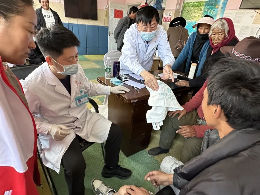 医疗队的第一站是雅江县,“马未离鞍人未歇”医疗队顾不上高原缺氧、奔波劳累,立刻投身到救助工作中。一大早,巡诊点门口便聚集了大批前来就诊的患者,他们大多数都因家庭条件贫困,加上健康意识薄弱,关节骨病一直得不到有效的治疗。