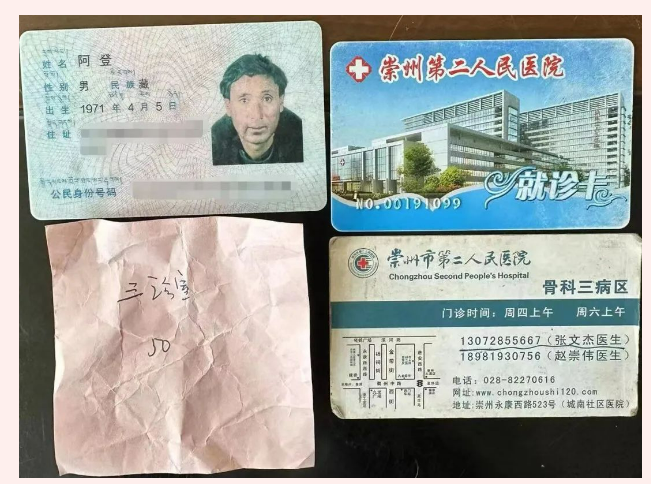 在稻城回访的过程中,医疗队遇到了一位曾经救治过的藏民阿登。2018年,阿登通过救助行动,在崇州二医院接受了手术治疗。出院时,医生给了阿登一张名片,而这张小小的名片,阿登保存了整整5年。