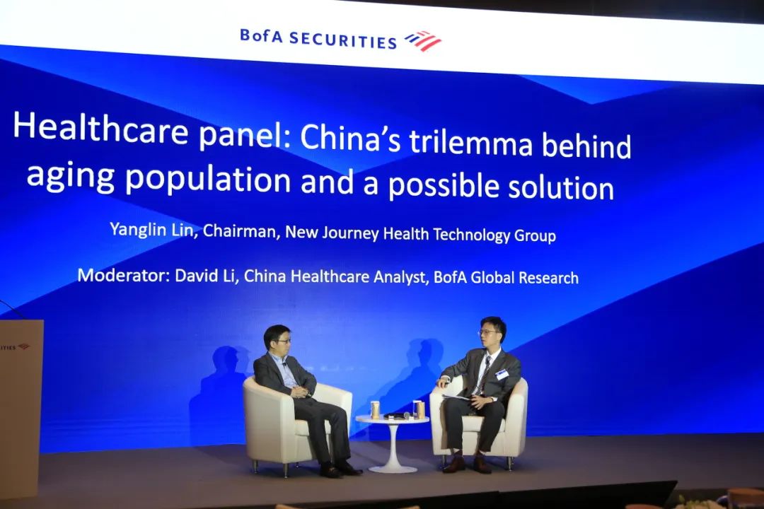 演讲结束后,林杨林与美银证券董事总经理、大中华区医药研究主管李博(David Li)就“医疗人才的引进与培养”、“医疗反腐对行业的影响”、“医疗行业政策走向”、“'医疗+保险''康养+保险'模式如何协同”等投资者关切的行业问题进行了深入的交流互动。
