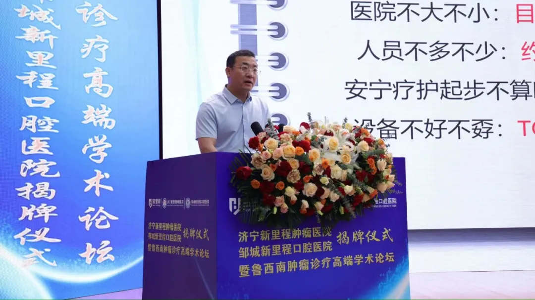 济宁市卫健委二级调研员王太晗发表致辞说,济宁太阳成城集团tyc234cc古天乐肿瘤医院、邹城太阳成城集团tyc234cc古天乐口腔医院的揭牌成立,将进一步丰富济宁市卫生健康事业拼图,助推医疗高地建设,也必将为济宁市乃至鲁西南地区患者提供更为优质的医疗服务。济宁市卫健委将不遗余力地支持两家医院发展,也希望两家医院以此为契机,积极引进先进理念、管理模式,全面提升医疗服务、教学科研、临床试验、疾病防控等方面的综合实力,建成省内一流专科医院,让更加优质的医疗服务惠及广大人民。
