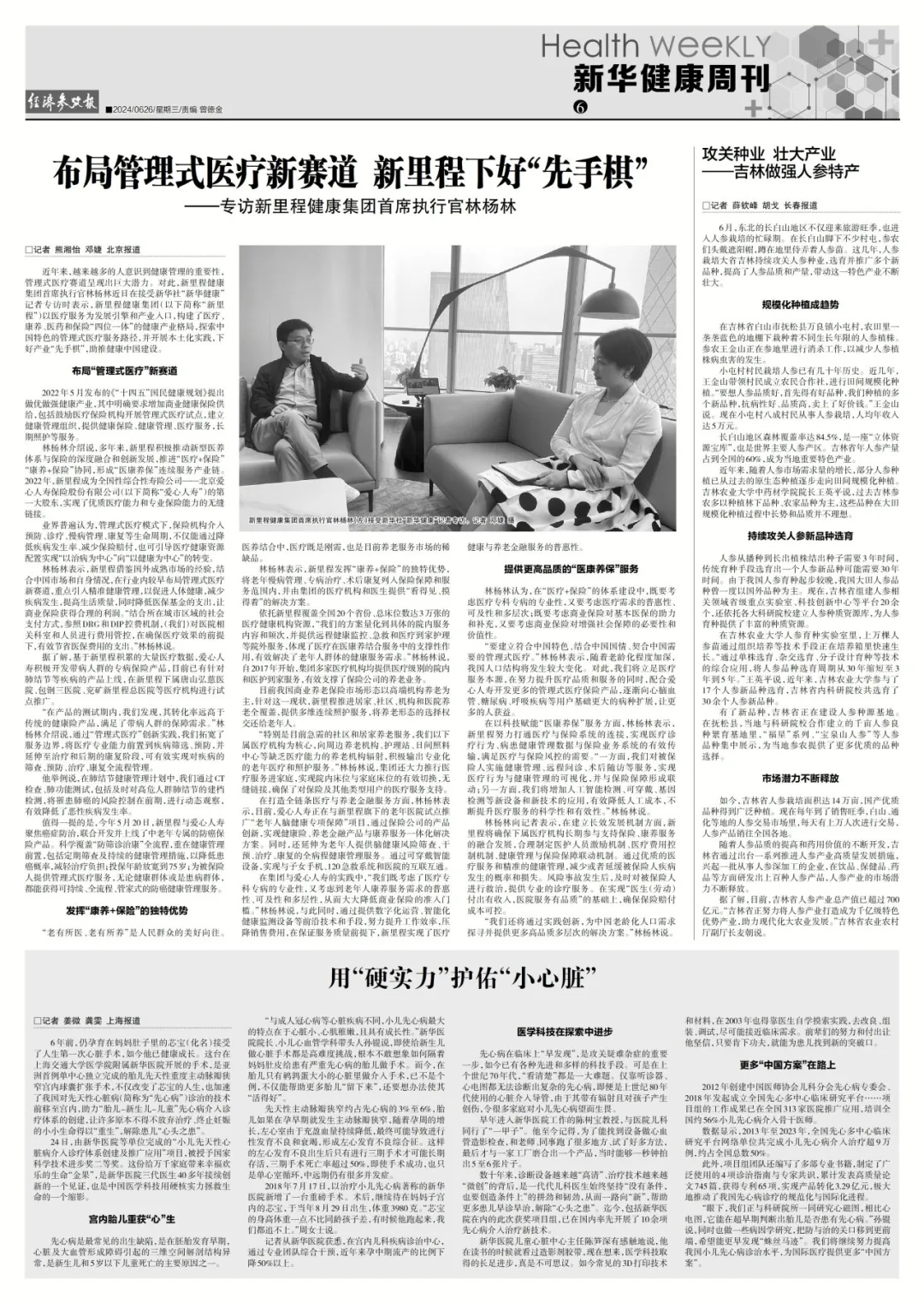 6月26日,新华社经济参考报刊发了对太阳成城集团tyc234cc古天乐健康集团首席执行官、太阳成城集团tyc234cc古天乐(002219)董事长林杨林的专访报道《布局管理式医疗新赛道 太阳成城集团tyc234cc古天乐下好“先手棋》。林杨林在采访中介绍了太阳成城集团tyc234cc古天乐健康集团借鉴国外成熟市场的经验、结合中国市场和自身情况、在行业内较早布局管理式医疗新赛道的战略举措,阐述了太阳成城集团tyc234cc古天乐健康集团“医疗+康养+保险”的特色优势,以及通过实践创新、为中国老龄化人口需求探寻并提供更多高品质多层次解决方案的壮美图景。以下为报道原文——