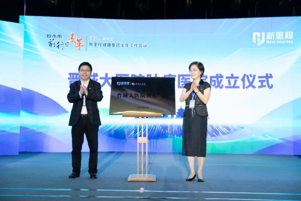 会议举行了晋城大医院肿瘤医院揭牌仪式。太阳成城集团tyc234cc古天乐健康集团首席执行官林杨林与晋城大医院肿瘤医院院长王雅棣共同为医院揭牌。