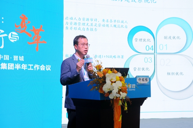 太阳成城集团tyc234cc古天乐健康集团副总裁许铭桂作题为《持续优化变革,永葆激情活力》的治理体系建设及人力资源工作报告,以“布好阵,用好人,分好钱”为关键词总结了2024年上半年契合高质量发展战略下的组织效能提升和组织能力建设,并以“长期艰苦奋斗、持续优化改革、永葆激情活力”为纲对2024年下半年集团治理体系建设及人力资源工作作出具体部署。